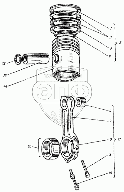 Каталог запасных частей к технике: Алтайдизель А-01М, Д-461. Поршень и шатун