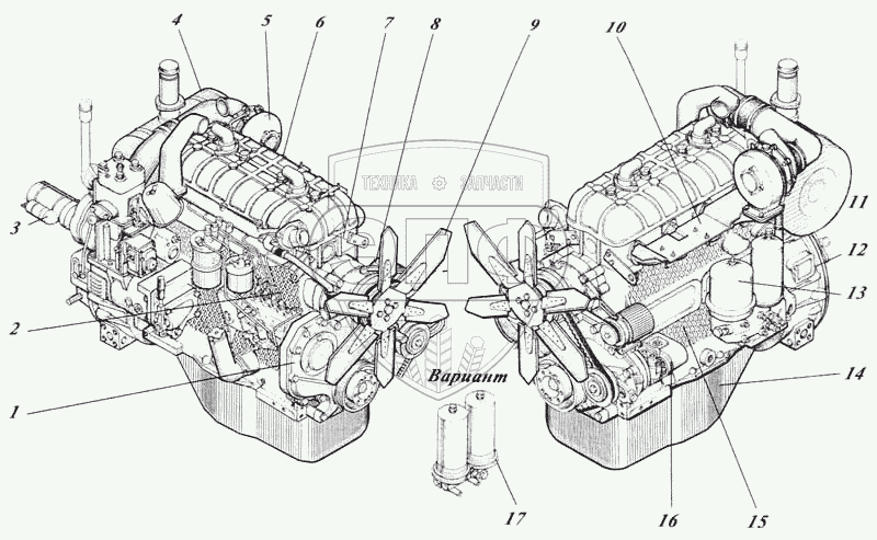 | 9 | 444-13с1 | Насос водяной и вентилятор | Нет на складе | |