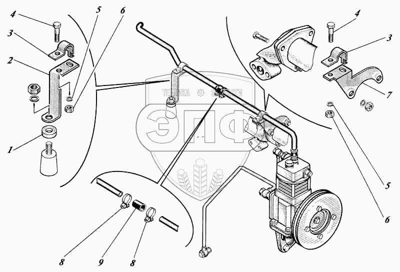 Каталог запасных частей к технике: Алтайдизель Д-442. Установка компрессора 442-25с1-62