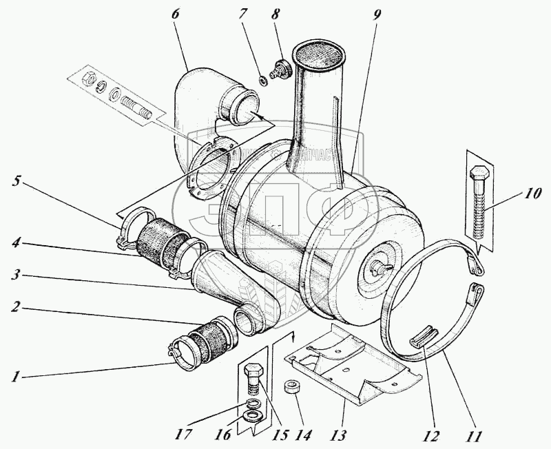 Каталог запасных частей к технике: Алтайдизель Д-442. Установка воздухоочистителя 440-35-12с1