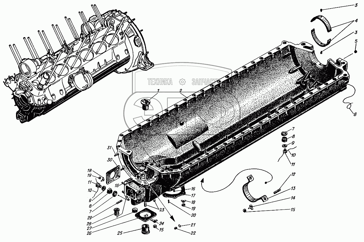 Каталог запасных частей к технике: Барнаултрансмаш Дизели Д12С1. Картер нижний