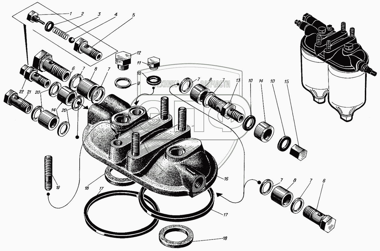 Каталог запасных частей к технике: Барнаултрансмаш Дизели Д12С1. Крышка топливного фильтра