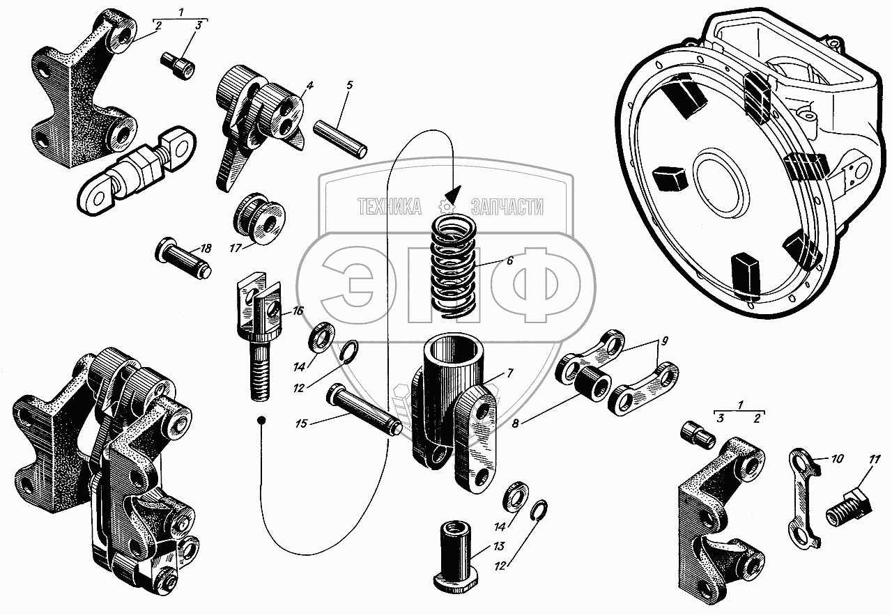 Каталог запасных частей к технике: Барнаултрансмаш Дизели Д12С1. Механизм муфты сцепления. Ролик включения.