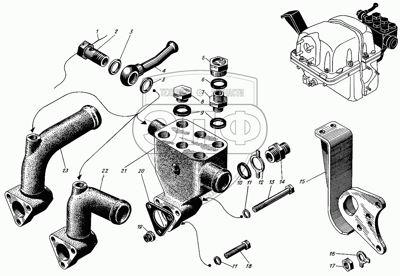 Каталог запасных частей к технике: Барнаултрансмаш Дизели Д12С1. Патрубки правого блока цилиндров