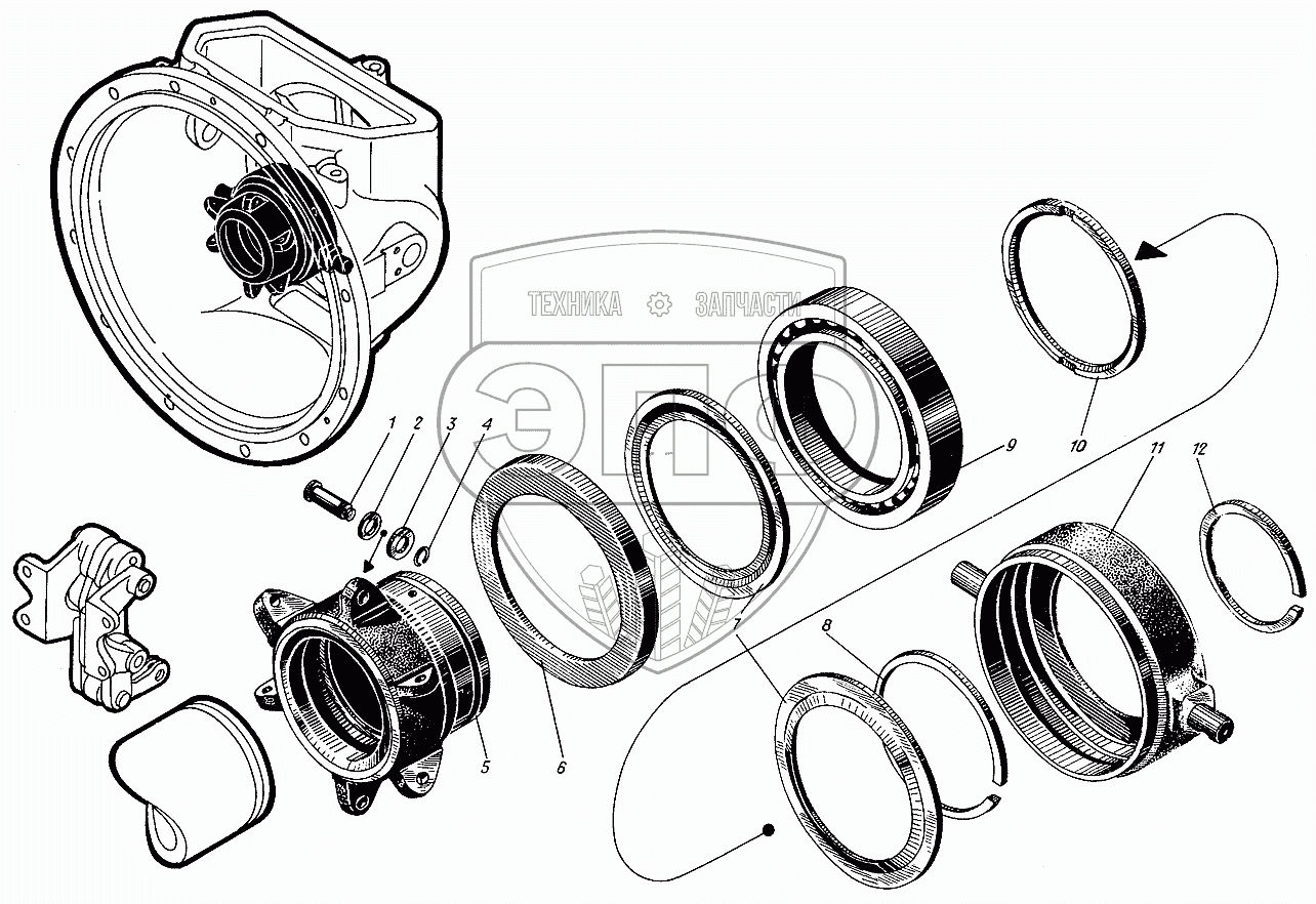 Каталог запасных частей к технике: Барнаултрансмаш Дизели Д12С1. Реверсная муфта. Бугель шарикоподшипника.