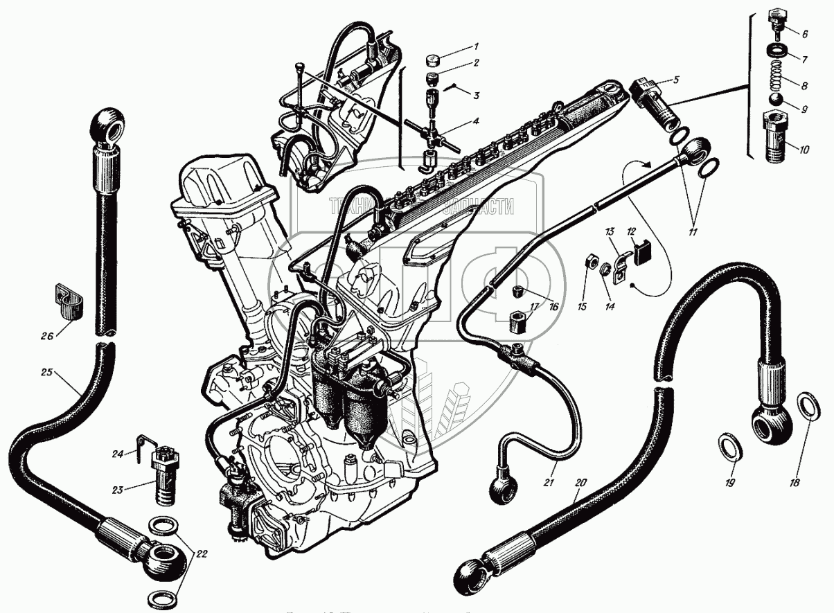 Каталог запасных частей к технике: Барнаултрансмаш Дизели Д12С1. Топливный трубопровод