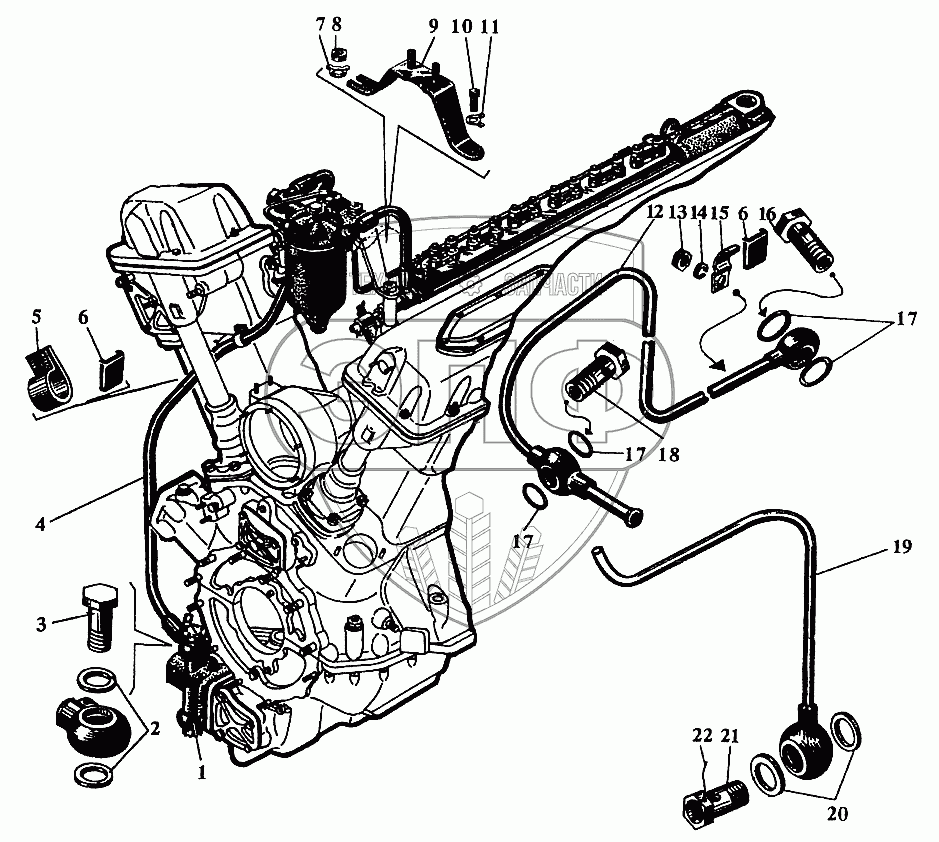 Каталог запасных частей к технике: Барнаултрансмаш Дизели Д12С2. Топливный трубопровод низкого давления