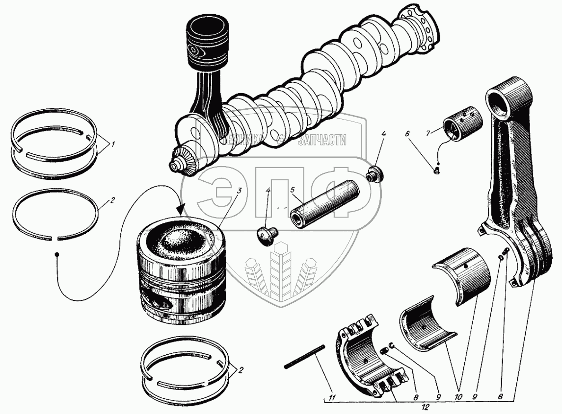 Каталог запасных частей к технике: Барнаултрансмаш Дизели Д6С1. Шатун и поршень