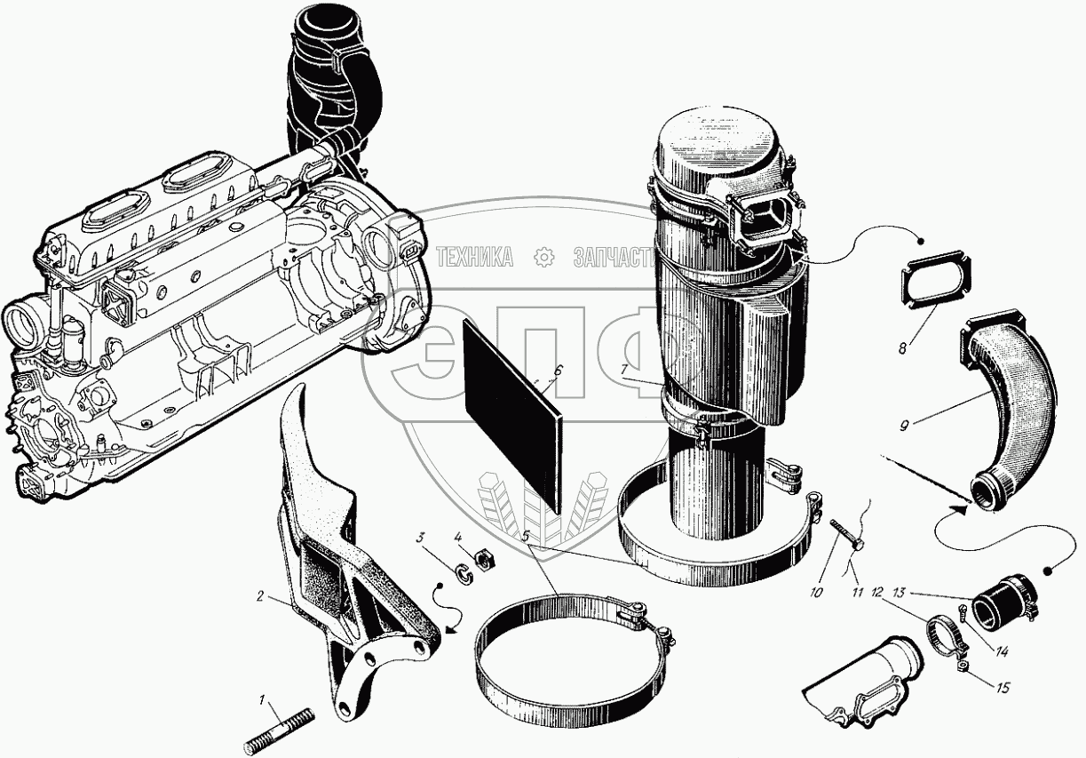 Каталог запасных частей к технике: Барнаултрансмаш Дизели Д6С1. Установка воздухоочистителя