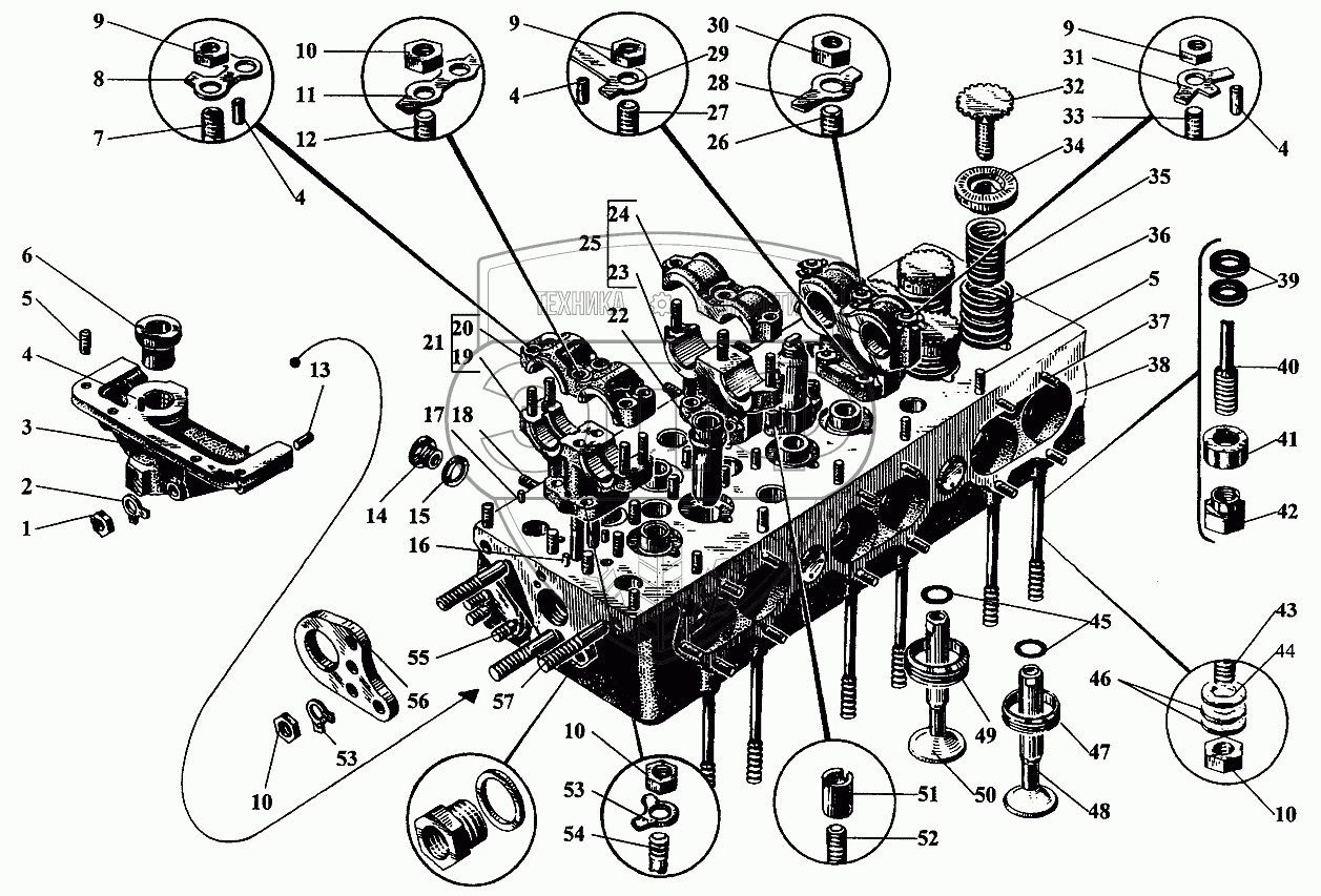 Каталог запасных частей к технике: Барнаултрансмаш Дизели Д6С2. Детали головки блока