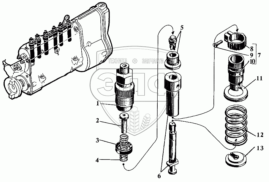 Каталог запасных частей к технике: Барнаултрансмаш Дизели Д6С2. Нагнетающая секция топливного насоса