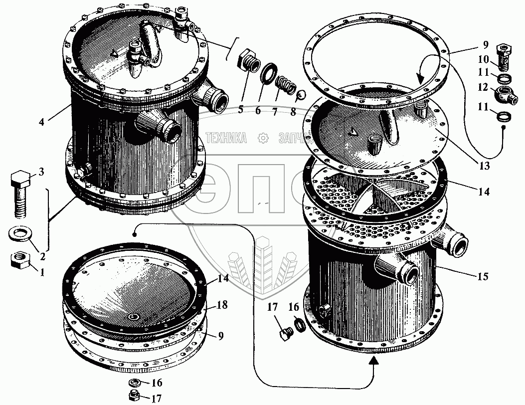 Каталог запасных частей к технике: Барнаултрансмаш Дизели Д6С2. Водомасляный охладитель