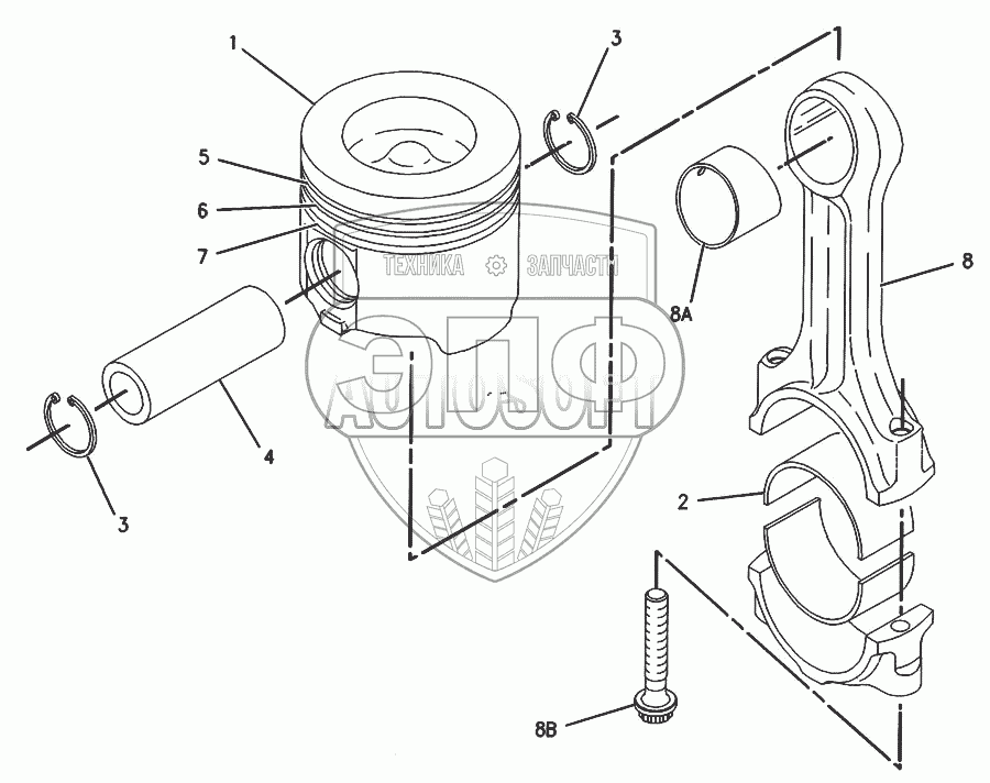 Каталог запасных частей к технике: Caterpillar-3116. 105-1711 Поршень и шатун