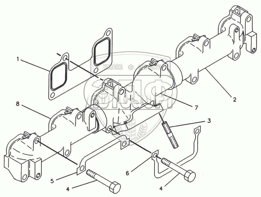 Каталог запасных частей к технике: Caterpillar-3116. 6I-2298 Выпускной коллектор