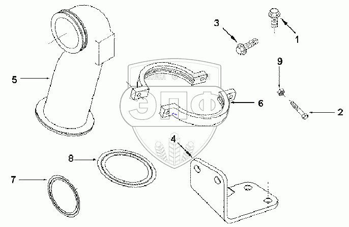 Каталог запасных частей к технике: Cummins 6BTA5.9-C180. XS 9469ZZ CONNECTION, EXHAUST OUTLET