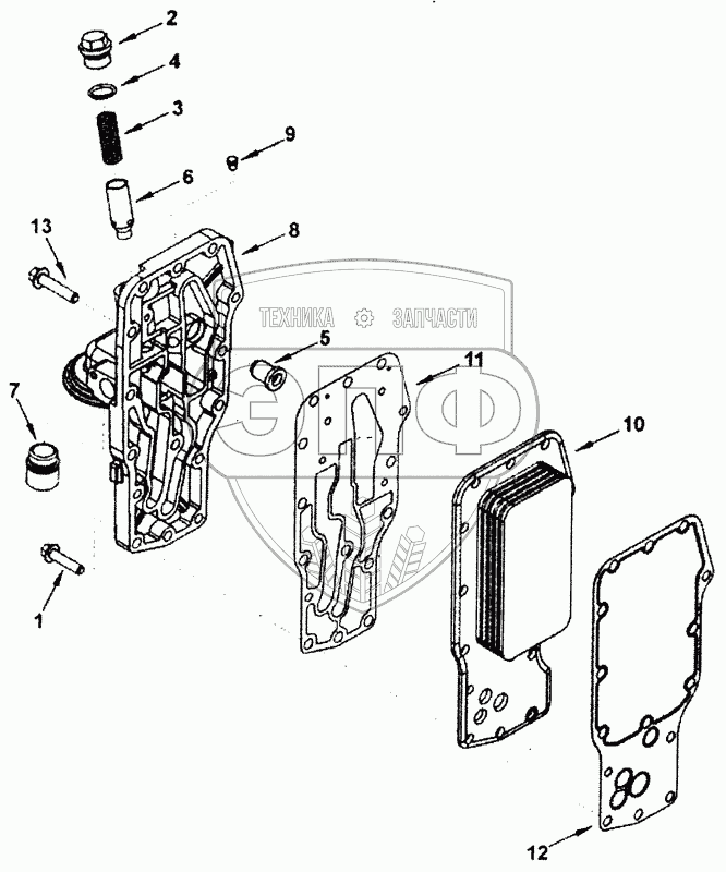 Каталог запасных частей к технике: Cummins 6ISBe4-245. Маслоохладитель двигателя