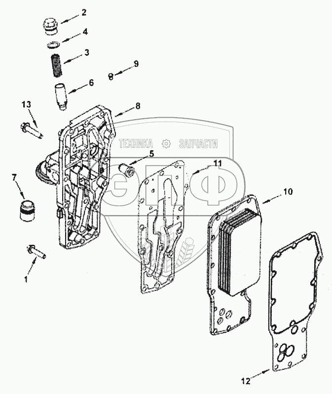 Каталог запасных частей к технике: Cummins 6ISBe4-300. Маслоохладитель моторного масла