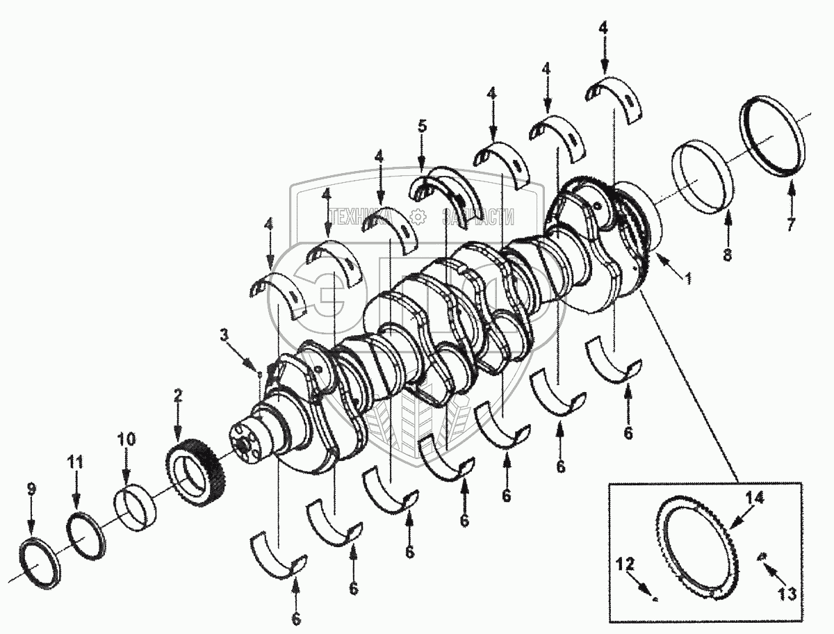 Каталог запасных частей к технике: Cummins 6ISLe-400-40 (Repto). Коленчатый вал