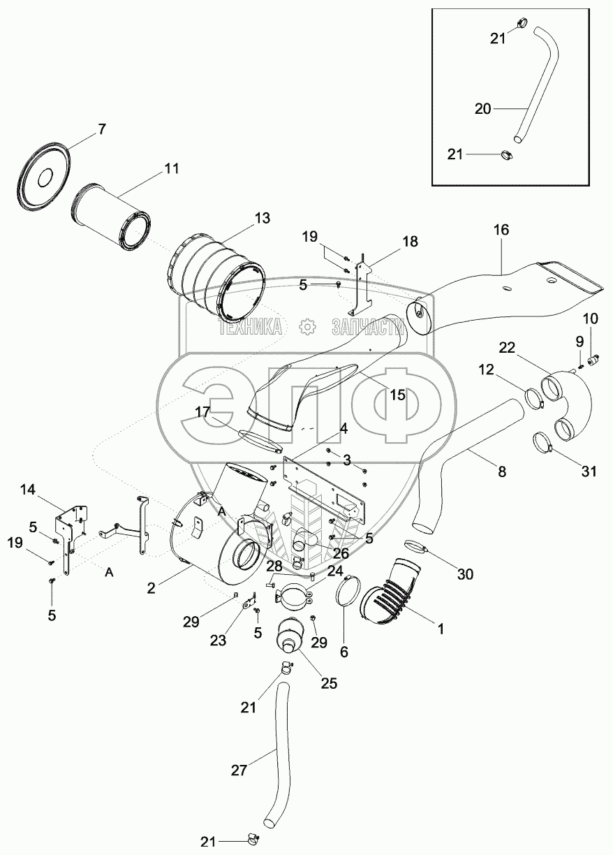 Каталог запасных частей к технике: Cummins 310. AIR INDUCTION SYSTEM - STANDARD DUTY