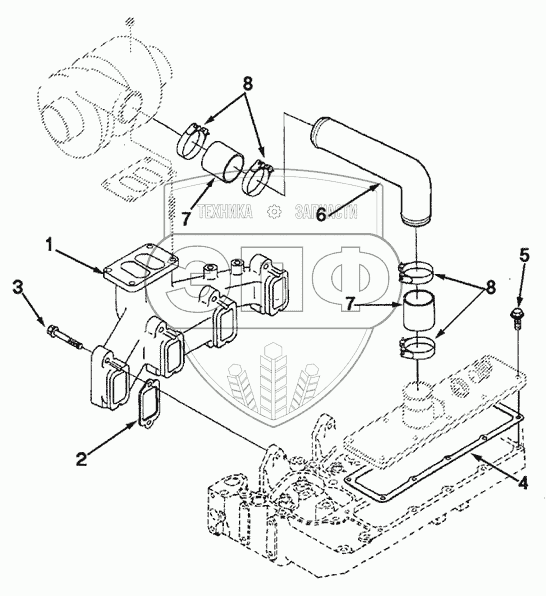Каталог запасных частей к технике: Cummins-4BT3.9. TURBOCHARGER LOCATION
