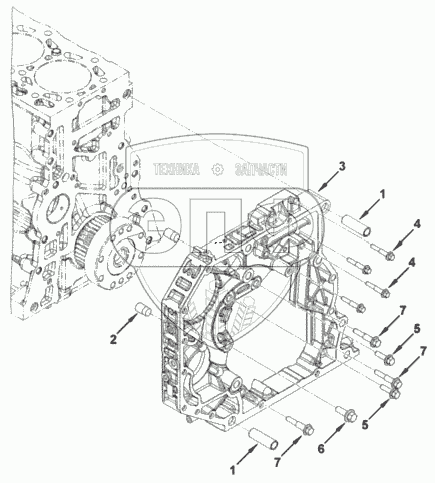 Каталог запасных частей к технике: Cummins ISF 3.8 (S3154). Картер задних распределительных шестерен