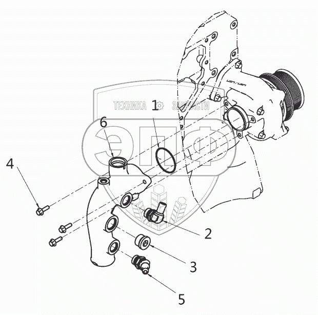 Каталог запасных частей к технике: DCEC ISZ450 41. Water inlet connection pipe