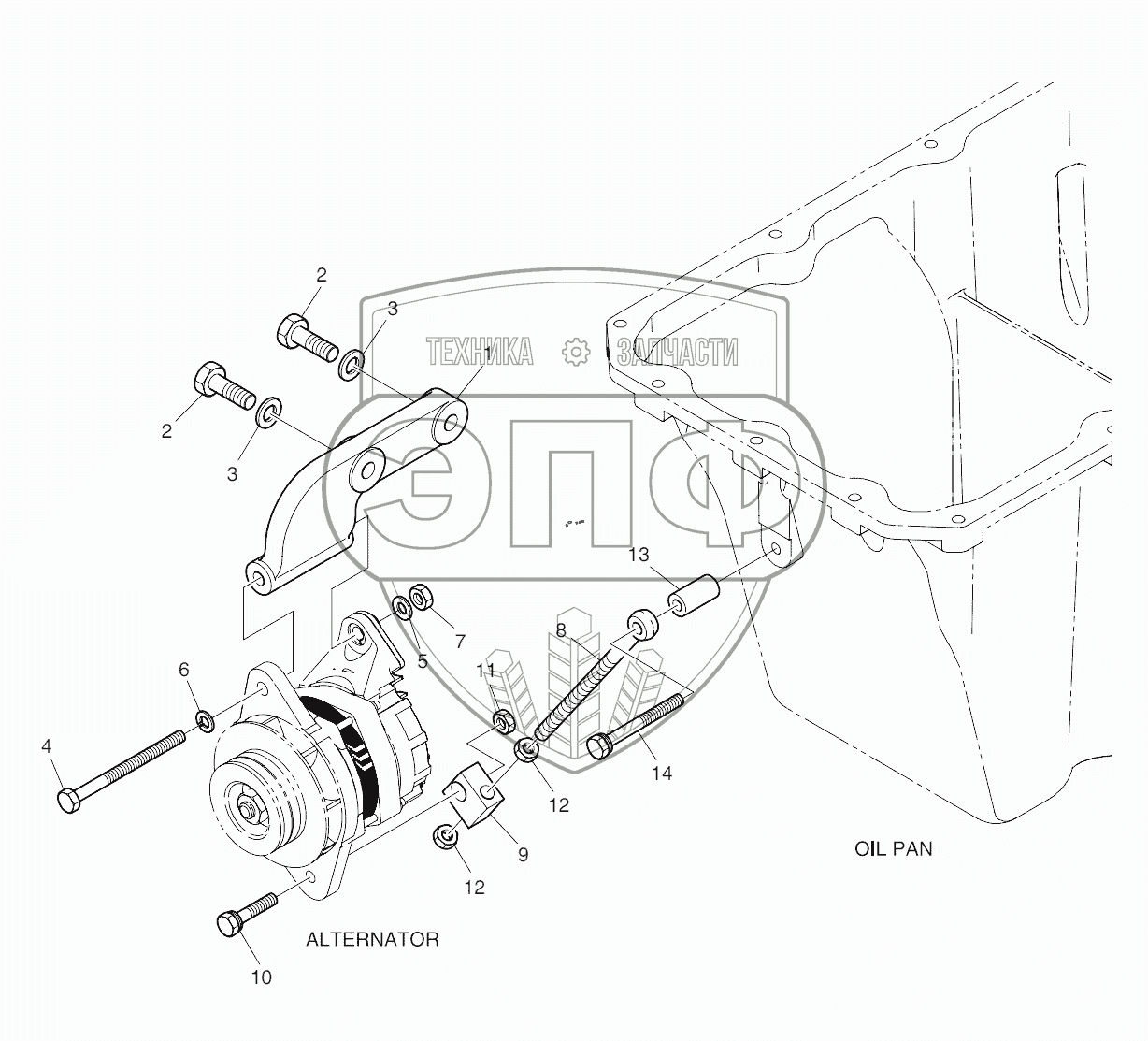Каталог запасных частей к технике: Doosan P180LE. Alternator Mounting