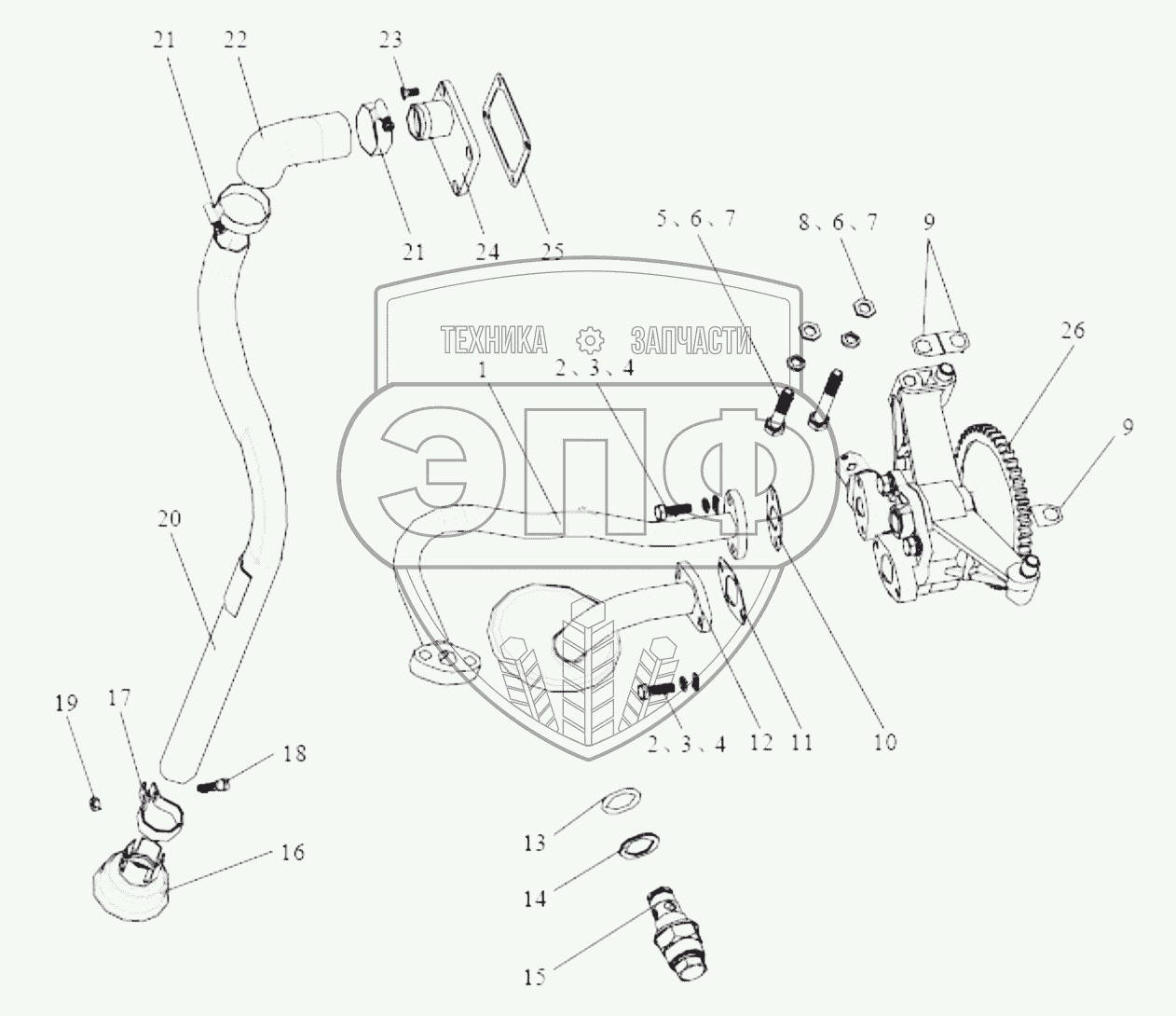 Каталог запасных частей к технике: FAW CA4DF3-13E3. Масляный насос и трубопровод