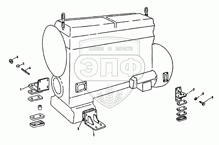 Каталог запасных частей к технике: HSW SW-680. Группа подвески двигателя