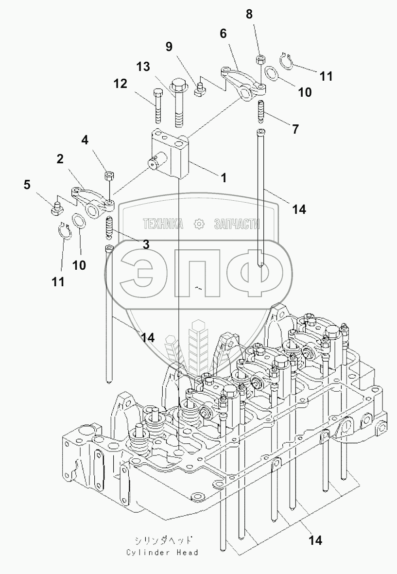 Каталог запасных частей к технике: Komatsu SA4D102E-1AB. ROCKER ARM