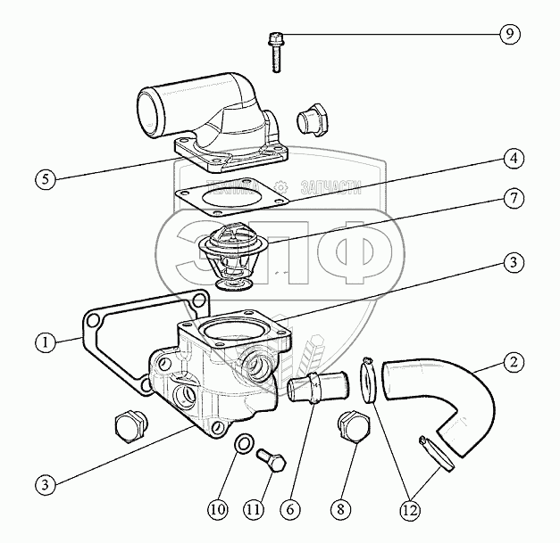 Каталог запасных частей к технике: ММЗ-3LD. Установка корпуса термостата.