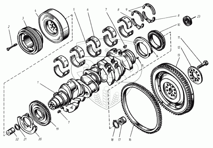 Каталог запасных частей к технике: ТМЗ Дизели ТМЗ-8421 - 85227. Коленчатый вал и маховик
