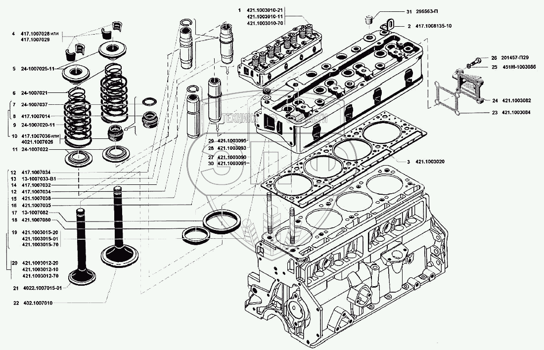 | 20 | 421.1003012-20 | Головка блока цилиндров с седлами и втулками в сборе | Нет на складе | |