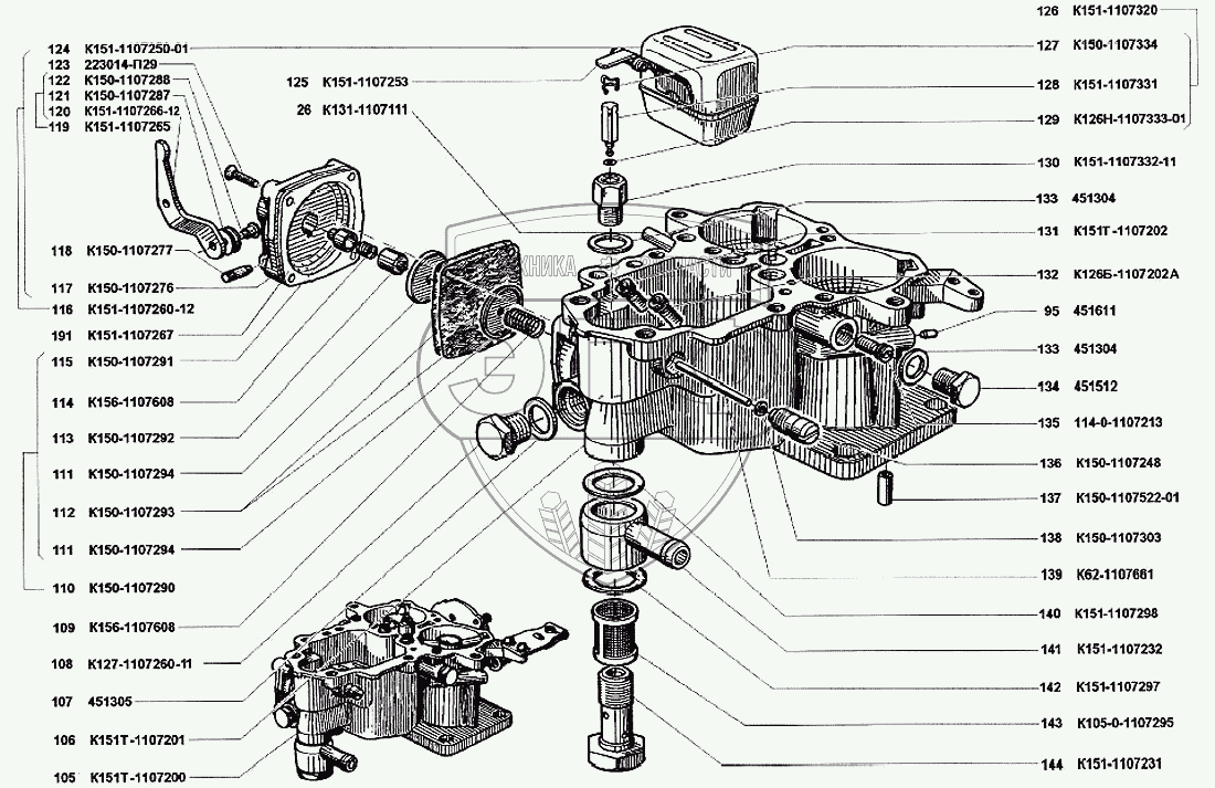| 105 | К151Т-1107200 | Корпус поплавковой камеры в сборе | Нет на складе | |