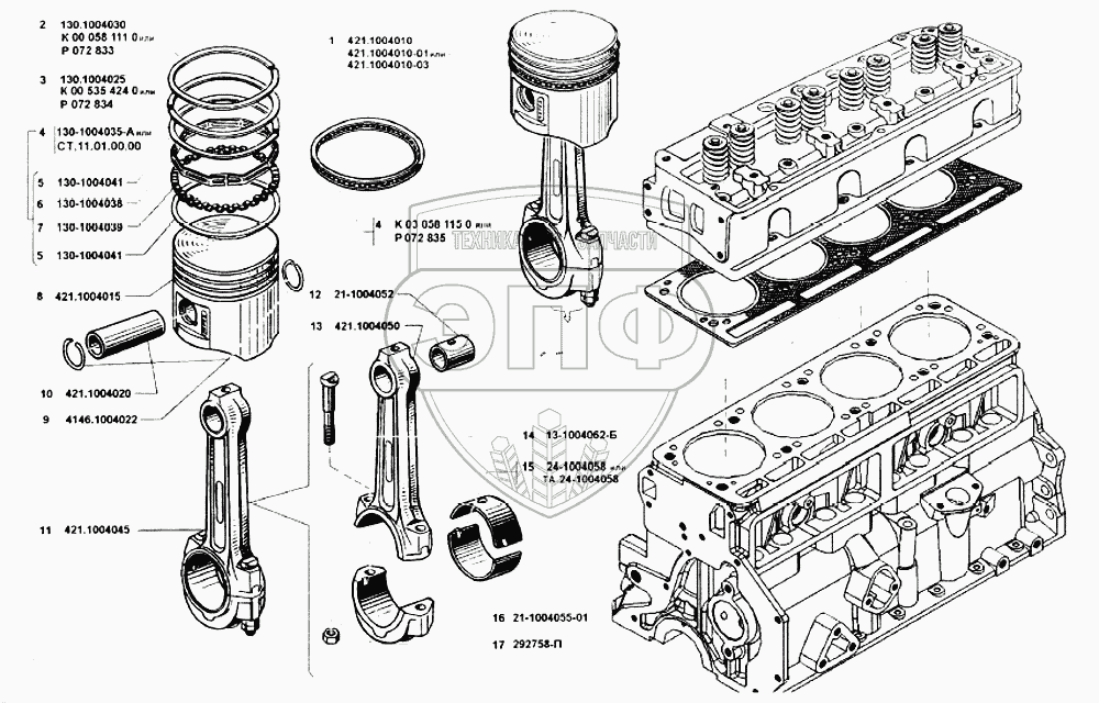 Каталог запасных частей к технике: УМЗ-4215. Поршень и шатун