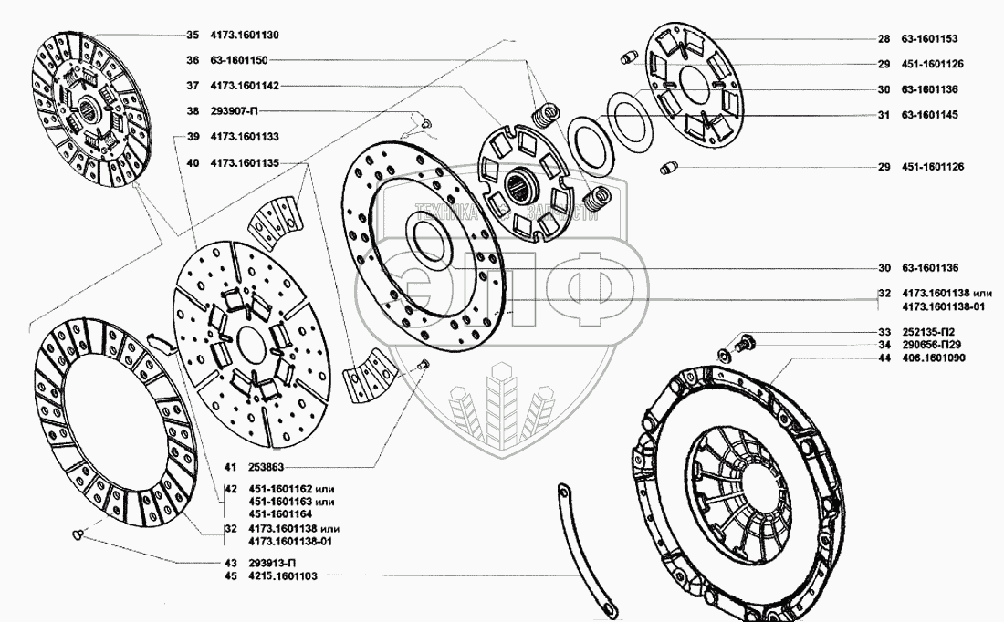 | 35 | 4173.1601130 | Диск сцепления ведомый в сборе | Нет на складе | |