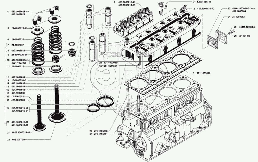 | 20 | 421.1003012-10 | Головка блока цилиндров с седлами и втулками в сборе | Нет на складе | |