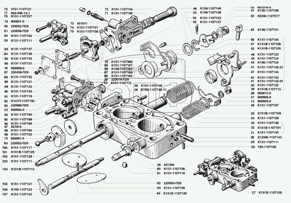 | 27 | К151Е-1107100 | Корпус смесительных камер в сборе | Нет на складе | |