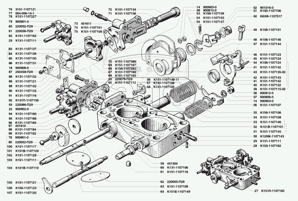 | 27 | К151Л-1107100 | Корпус смесительных камер в сборе | Нет на складе | |