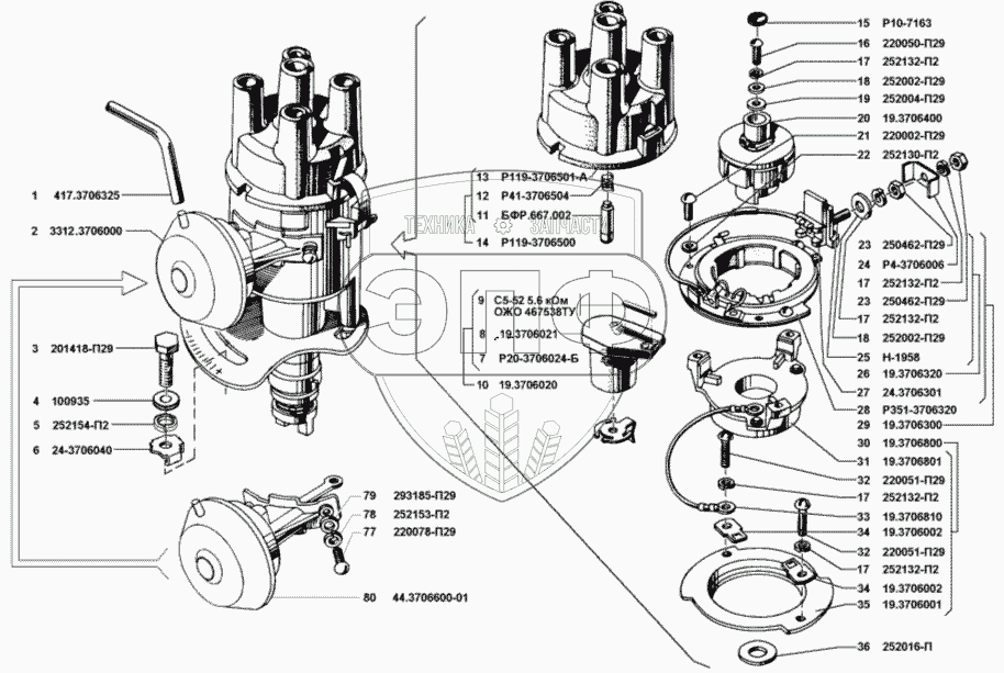 Каталог запасных частей к технике: УМЗ-421. Распределитель зажигания