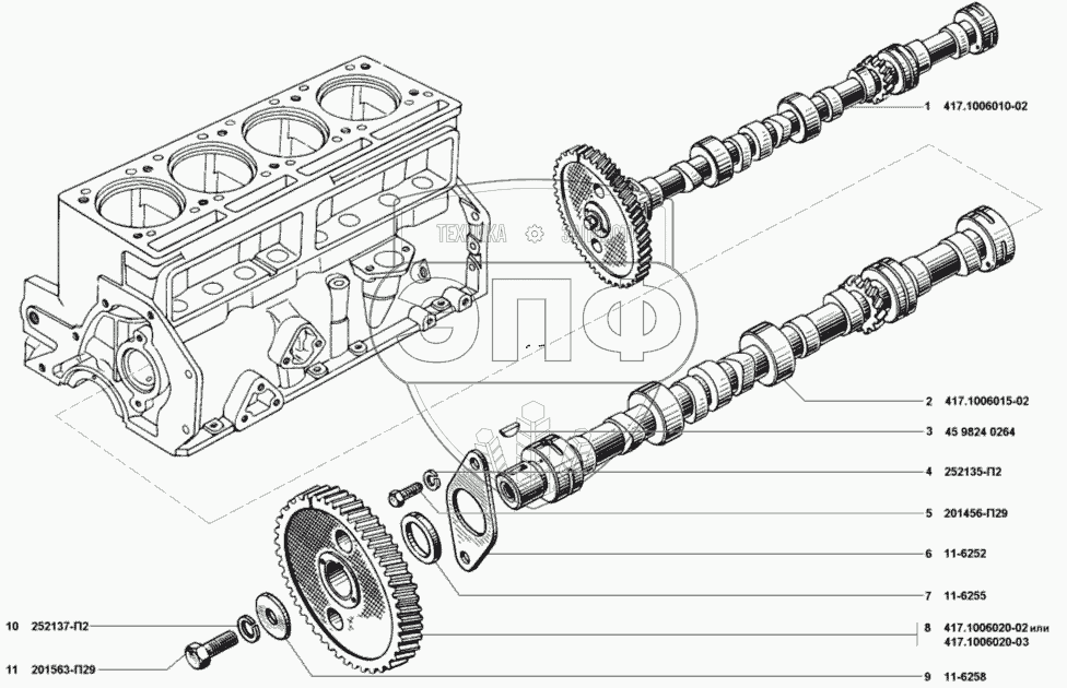 | 1 | 417.1006010-02 | Вал распределительный с шестерней в сборе | Нет на складе | |