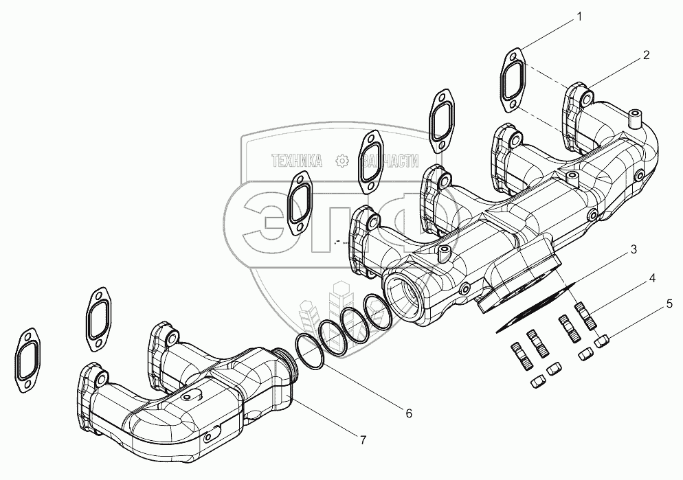 Каталог запасных частей к технике: Weichai 6M11 DHM11D0002. Exhaust Manifold Group