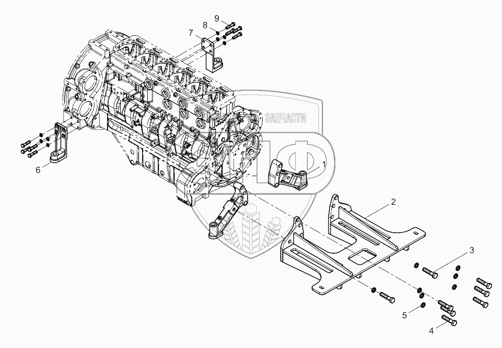 Каталог запасных частей к технике: Weichai 6M11 DHM11D0003. Engine Bracket Group