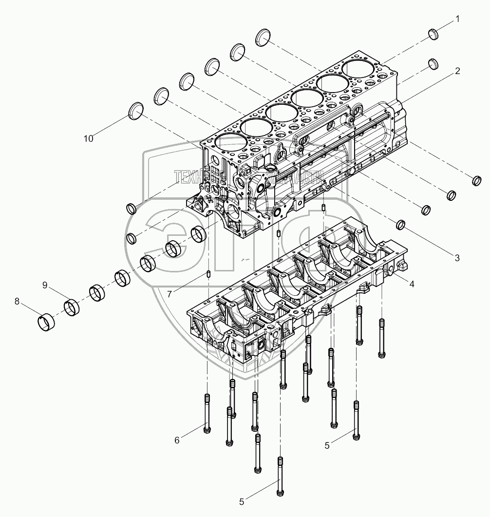 Каталог запасных частей к технике: Weichai 6M11 DHM16D0002. Cylinder Block Preassembly