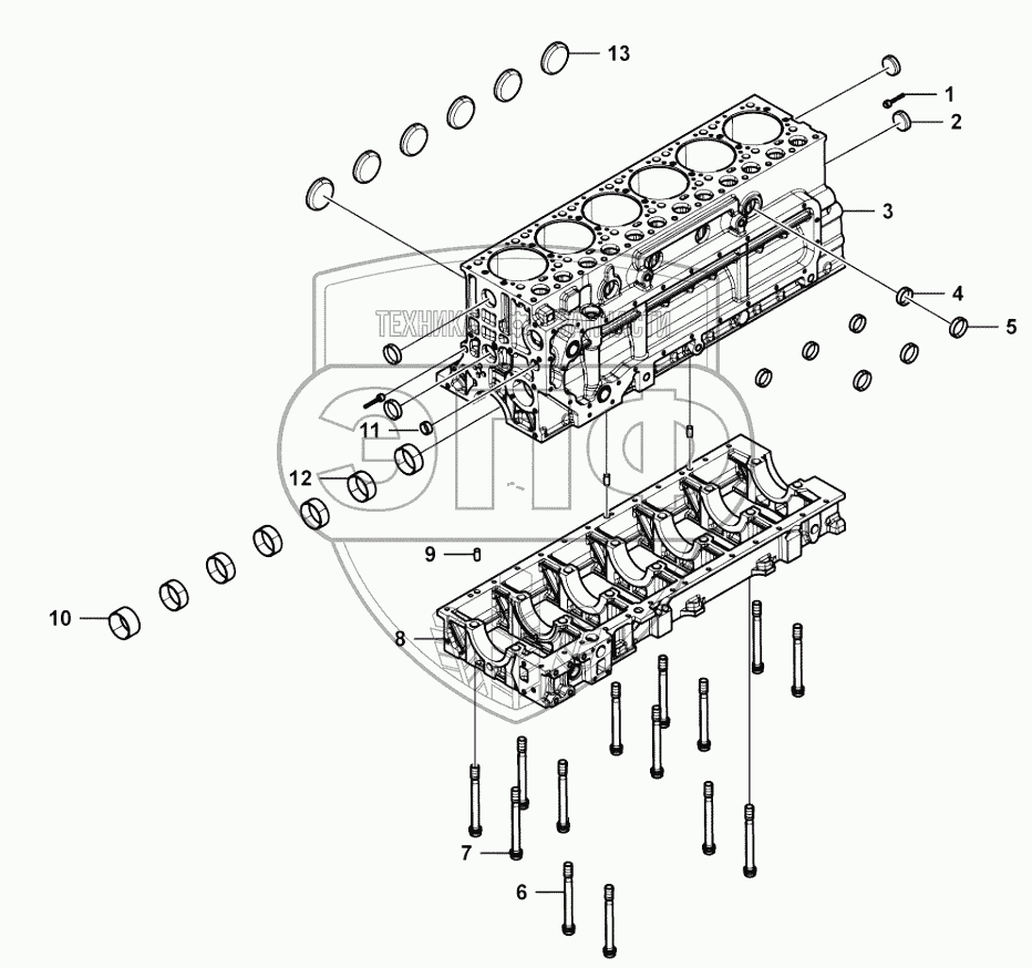 Каталог запасных частей к технике: Weichai WD10G220E21. Cylinder block preassembly