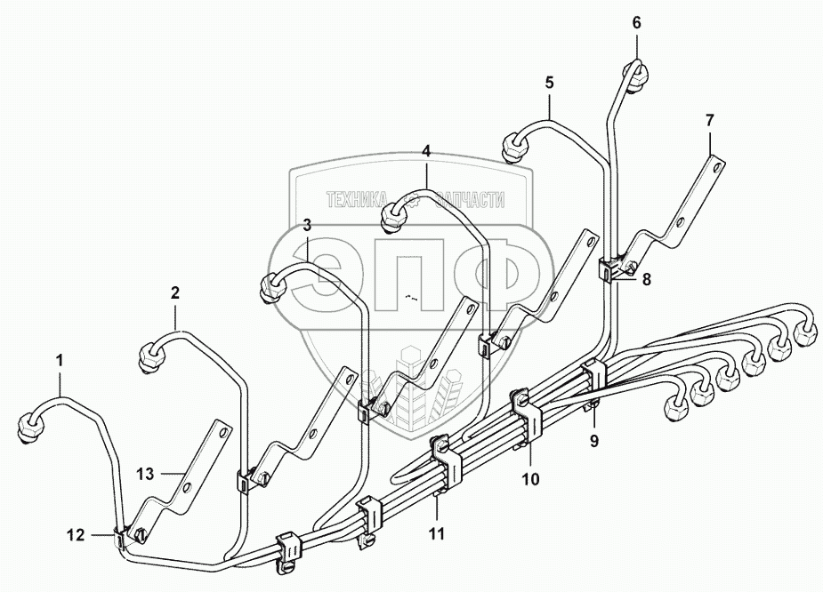 Каталог запасных частей к технике: Weichai WD10G220E21. High-pressure fuel pipe assembly