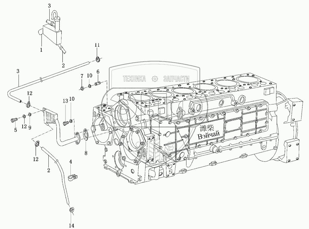 Каталог запасных частей к технике: Weichai WD615 (Евро 3). Корпус цилиндра