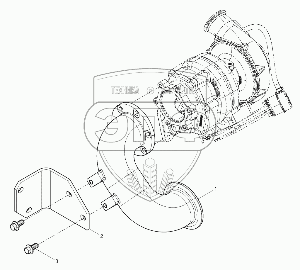 Каталог запасных частей к технике: Weichai WP10336E40 (Евро 4). Rear Exhaust Manifold Group