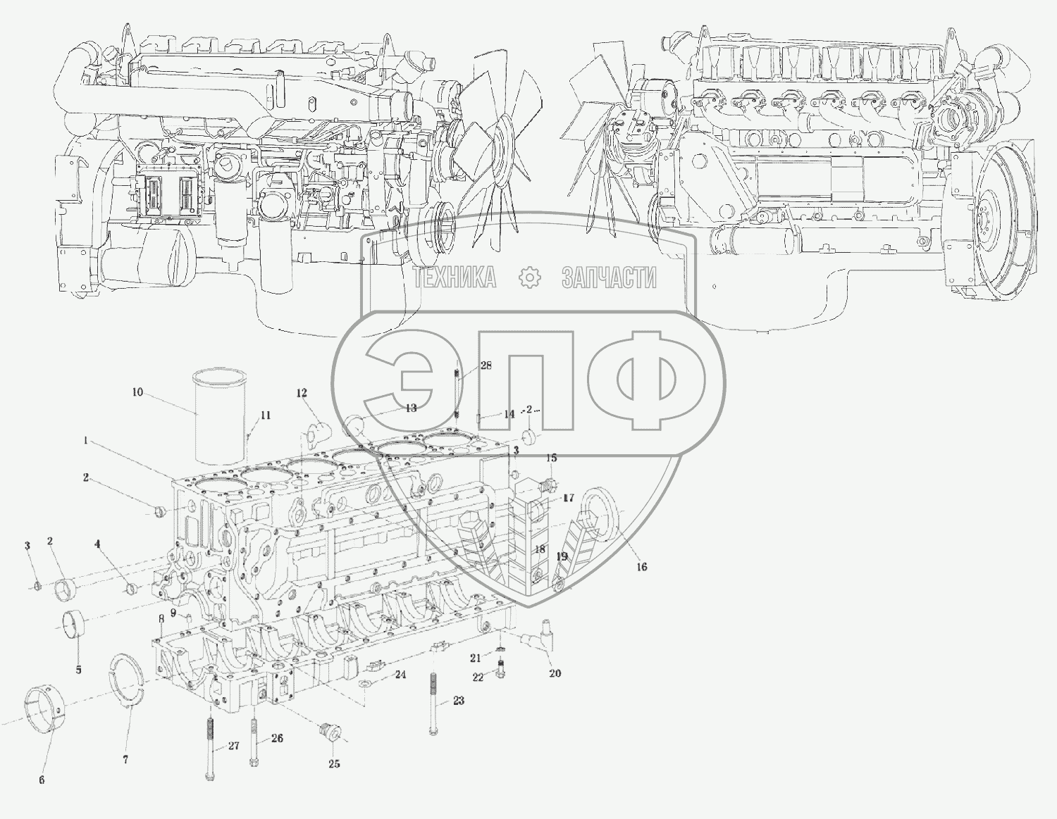 Каталог запасных частей к технике: Weichai WP10 (Евро 2). Блок цилиндров