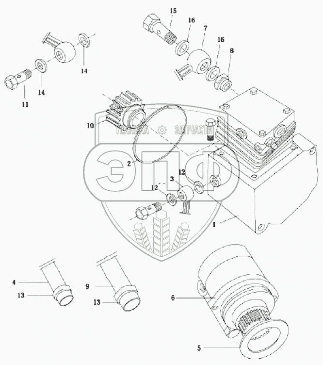 Каталог запасных частей к технике: Weichai WP10 (Евро 2). Компрессор